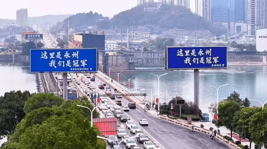 这一切始于网络,成于共情。新年伊始,“这里是永州,我们是冠军。”继苏州、南京球迷在湘超冠军城市永州打出祝贺夺冠的巨幅广告牌后,江苏各地的网友纷纷跟上,“湘超黑马 冠军永州”“同是冠军城 永州不独行”——没有严肃的辞令,只有兄弟间最直白的喝彩。