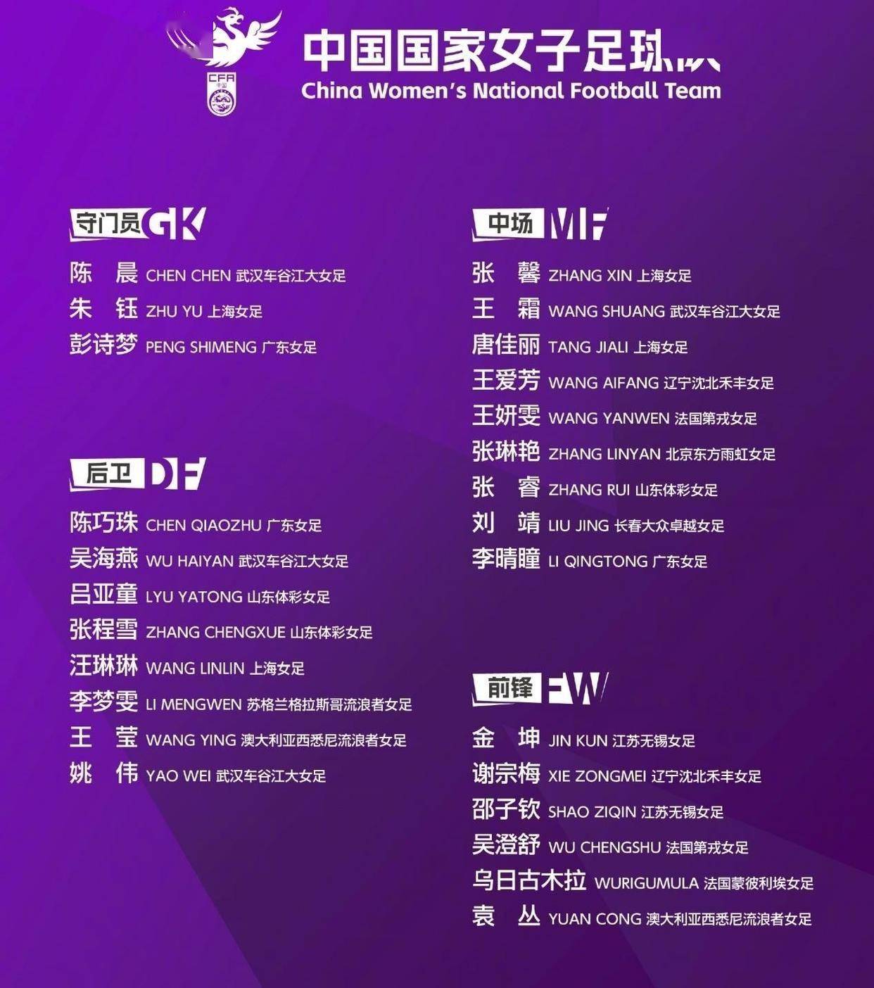 主教练安特·米利西奇带领的这支球队共有26名球员,目前没有伤病情况。 阵容中包括王霜、张琳艳、吴海燕等经验丰富的球员,还有六名在海外效力的球员:李梦雯、王莹、王妍雯、吴澄舒、乌日古木拉和袁丛。 这些留洋球员带来了欧洲和澳大利亚联赛的高强度对抗经验。 队长吴海燕在赛前表示,这是她职业生涯的最后一届亚洲杯,全队都希望能用冠军为她送行。