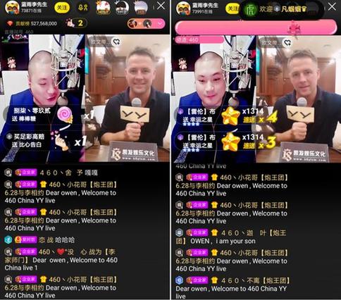 在直播间,李先生早早就和粉丝们做好了准备,粉丝们配合公屏全部用英文:Dear Owen,Welcome to 460 China YY live的特殊方式欢迎欧文的到来,主播李先生也用英文欢迎欧文,可谓诚意满满。