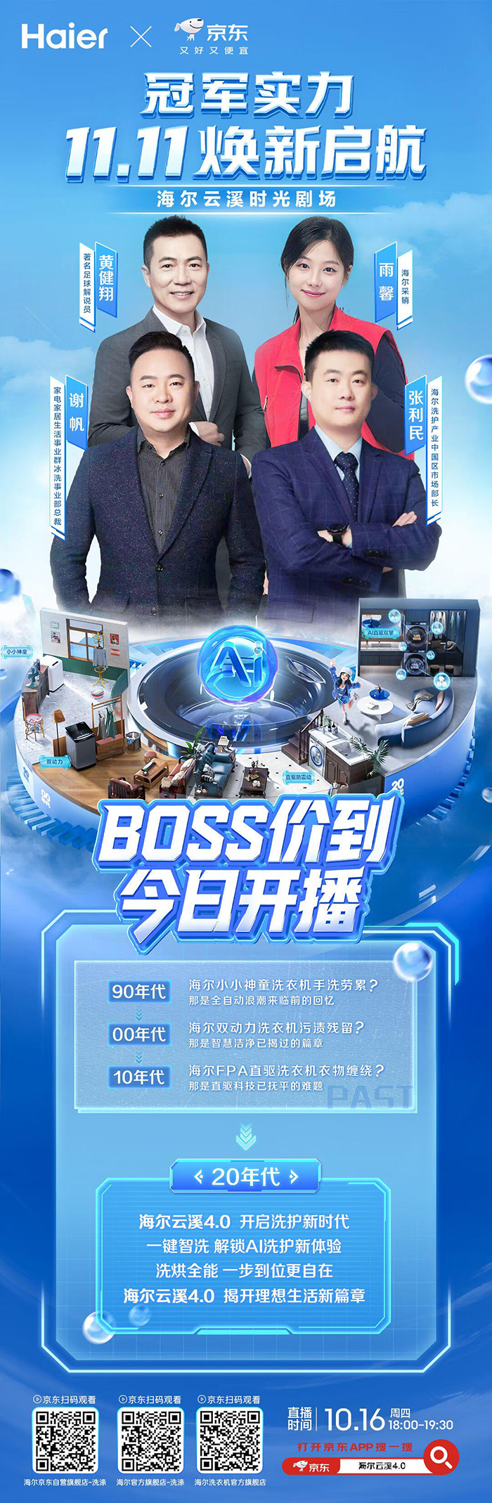 2025-10-17体育,足球,波胆,反波胆,角球,串关,大小球,世界杯,欧洲杯,比分,足球比分,赛事,足球赛事,电竞赛事,体育赛事直播,足球直播平台,世界杯直播,足球直播,体育直播,NBA直播,游戏直播,LOL直播今年11.11大促刚启幕,一众家电家居知名品牌总裁便空降京东直播间,为消费者送上惊喜福利。10月16日晚18点,海尔洗护产业中国区市场部长张利民将做客京东家电家居采销直播间,携手京东家电家居事业群冰洗事业部负责人和著名足球解说员黄健翔共同带来一场“时空穿越”式的科技大秀。双方将带领消费者回顾洗衣技术从“洗净”“护衣”到“静音”的演进历程,并在“未来实验室”环节首度揭秘海尔云溪4.0的AI黑科技——如何用一套系统解决传统洗护的“洗不净、伤衣物、噪声大”三大痛点,重新定义智慧洗护。